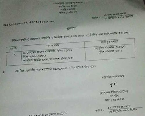 রাষ্ট্রপতি মো. আবদুল হামিদের আদেশক্রমে স্বরাষ্ট্র মন্ত্রণালয়ের পুলিশ-১ অধিশাখার উপসচিব মোহাম্মদ ইলিয়াস হোসেনের স্বাক্ষরে এ প্রজ্ঞাপন জারি করা হয়। প্রজ্ঞাপনে বলা হয়েছে, আগামী ৩১ জানুয়ারি হতে এ নিয়োগ আদেশ কার্যকর হবে। ওইদিন বর্তমান আইজিপি একেএম শহীদুল হকের চাকরির মেয়াদ শেষ হবে।