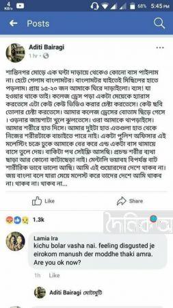অদিতির পাশাপাশি ইশরাতুল শোভা, আফরিন আসাদ মেঘলাসহ আরও বেশ কয়েকজন তরুণীও ফেসবুকে একই ধরনের অভিজ্ঞতার কথা লিখেছেন।