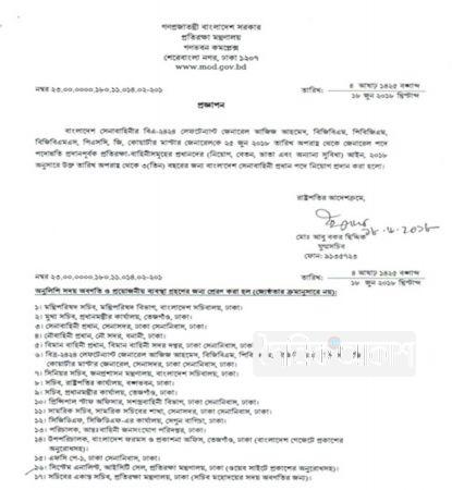 রাষ্ট্রপতির আদেশক্রমে প্রতিরক্ষা মন্ত্রণালয়ের যুগ্ম সচিব আবু বকর সিদ্দিক স্বাক্ষরিত এই প্রজ্ঞাপনে আজিজ আহমেদের মেয়াদ তিন বছর উল্লেখ করা হয়েছে। গত ১৯ ফেব্রুয়ারি সংসদে পাস হওয়া এক বিলে বলা হয়েছে, তিন বাহিনীর প্রধানের মেয়াদ হবে সর্বোচ্চ চার বছর।
