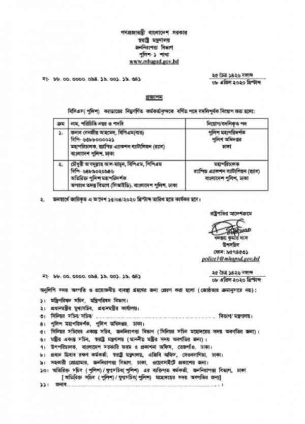 উল্লেখ্য, আগামী ১৩ এপ্রিল বর্তমান আইজিপি ড. মোহাম্মদ জাবেদ পাটোয়ারীর মেয়াদ শেষ হয়ে যাচ্ছে। তার স্থলে র্যাবের মহাপরিচালক ড. বেনজীর আহমেদকে পুলিশের ৩০তম আইজি হিসেবে নিয়োগ দিয়েছে সরকার।