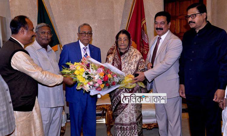 রাষ্ট্রপতিকে রওশনের ফুলেল অভিনন্দন