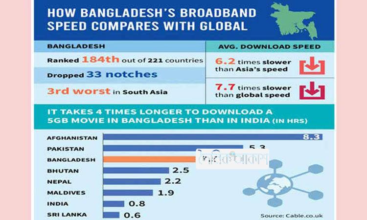 ব্রডব্যান্ড ইন্টারনেটের গতিতে বিশ্বে ১৮৪তম বাংলাদেশ