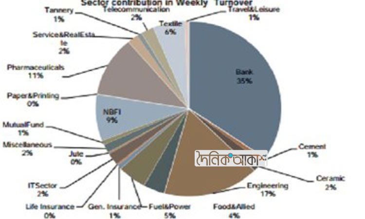 অাকাশ জাতীয় ডেস্ক: সমাপ্ত সপ্তাহে ঢাকা স্টক এক্সচেঞ্জে (ডিএসই) লেনদেনের শীর্ষে অবস্থান করছে ব্যাংক খাত। ডিএসইতে মোট লেনদেনের ৩৫ শতাংশ