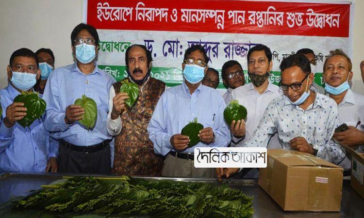 আকাশ জাতীয় ডেস্ক: নিষেধাজ্ঞা কাটিয়ে সাড়ে ছয় বছর পর ইউরোপে পুনরায় পান রপ্তানি শুরু হয়েছে। প্রথম চালানে রপ্তানি হচ্ছে এক