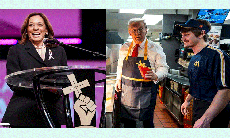 সমর্থকদের ফ্রেঞ্চ ফ্রাই বিতরণ করলেন ট্রাম্প, কমলা গেলেন গির্জায়