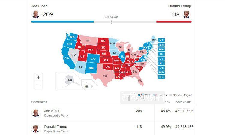 বাইডেনের ২০৯ ইলেকটোরাল ভোট, ট্রাম্পের ১১৮