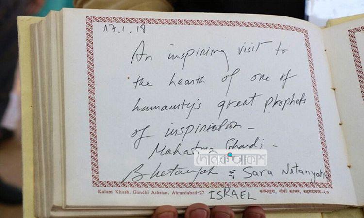 অাকাশ আর্ন্তজাতিক ডেস্ক: ‘গান্ধী’ বানান ভুল লিখলেন নেতানিয়াহু। মহাত্মা গান্ধীর ‘সবরমতি আশ্রমে’ গিয়েছিলেন ইসরাইলের প্রধানমন্ত্রী বেঞ্জামিন নেতানিয়াহু। বুধবার সেখানে গিয়ে