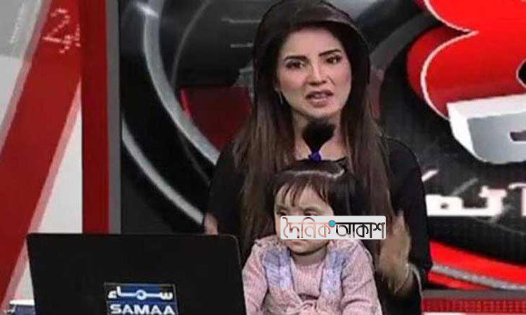 ধর্ষণের প্রতিবাদে মেয়ে কোলে নিয়ে খবর পড়লেন উপস্থাপিকা