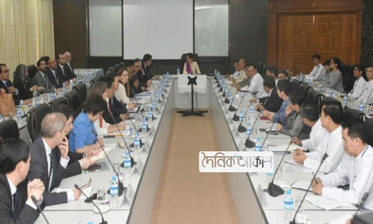 অাকাশ আর্ন্তজাতিক ডেস্ক: রোহিঙ্গা সংকটের পরিস্থিতি দেখতে সফররত জাতিসংঘ নিরাপত্তা পরিষদের প্রতিনিধিদের সঙ্গে মিয়ানমারের নেত্রী অং সান সু চি ও
