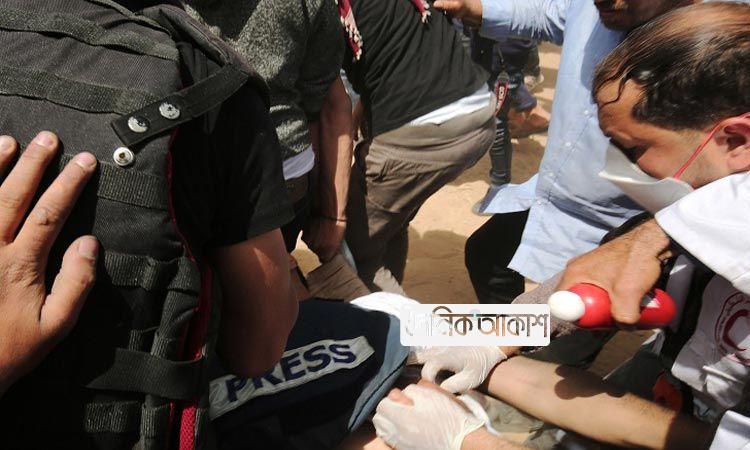 অাকাশ আর্ন্তজাতিক ডেস্ক: গাজা উপত্যকায় দ্বিতীয় সপ্তাহের মতো শুক্রবারের বিক্ষোভের সময় কর্তব্যরত সাংবাদিকদেরও রেহাই দেয়নি দখলদার ইসরাইলি সেনাবাহিনী। প্রেস লেখা