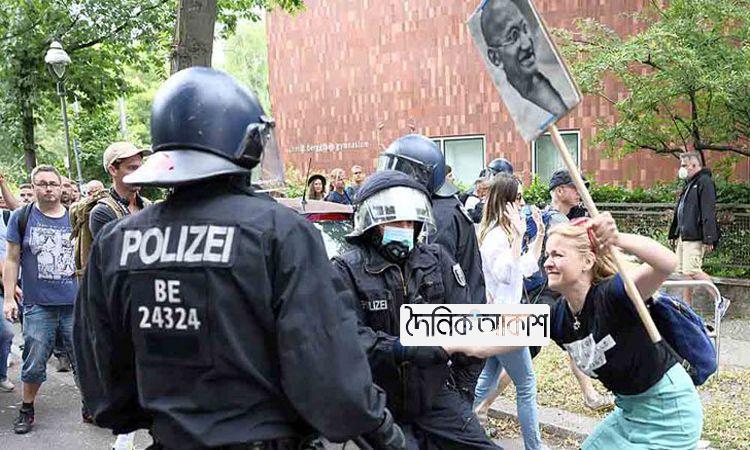 গান্ধীর ছবি নিয়ে ইউরোপে ভ্যাকসিনবিরোধী বিক্ষোভ