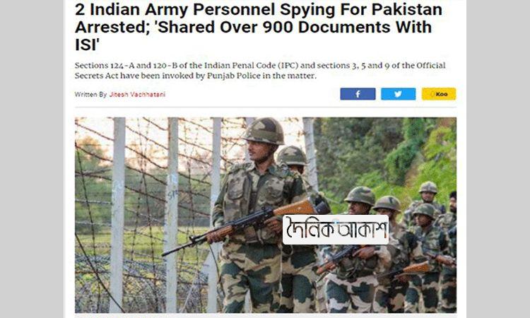 পাকিস্তানের হয়ে গুপ্তচরবৃত্তি, দুই ভারতীয় সেনা গ্রেফতার