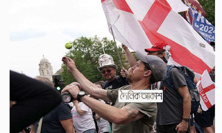 লন্ডনে লকডাউনবিরোধী বিক্ষোভে পার্লামেন্ট ভবনে বল নিক্ষেপ!