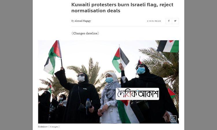 গাজায় হামলা: ইসরায়েলের পতাকা পুড়িয়ে কুয়েতিদের বিক্ষোভ
