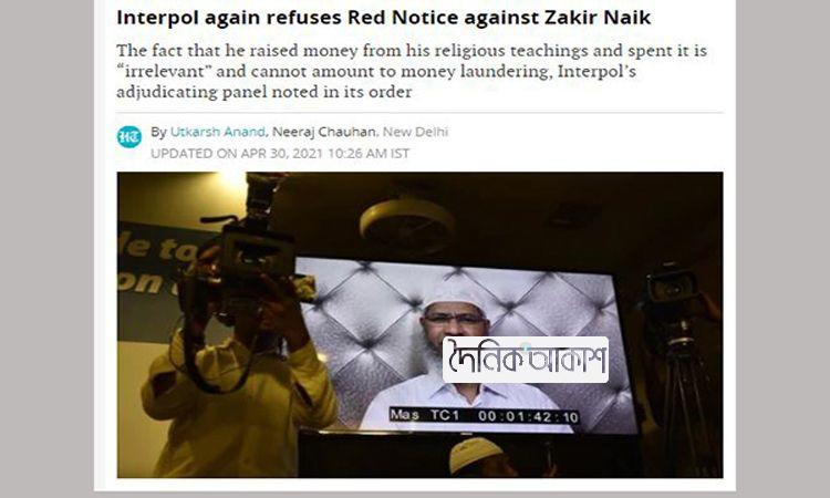আকাশ আর্ন্তজাতিক ডেস্ক: ভারতের ইসলামী বক্তা ড. জাকির নায়েকের বিরুদ্ধে রেড নোটিশ জারি করার অনুরোধ খারিজ করেছে ইন্টারপোল। এর মধ্য