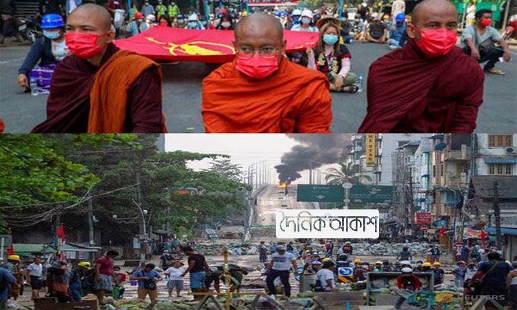 আকাশ আর্ন্তজাতিক ডেস্ক: মিয়ানমারেরসবচেয়ে প্রভাবশালী বৌদ্ধ ভিক্ষু সমিতি দেশটিতে সেনা অভ্যুত্থানবিরোধী প্রতিবাদকারীদের বিরুদ্ধে সহিংসতা বন্ধের জন্য সামরিক জান্তার প্রতি আহ্বান