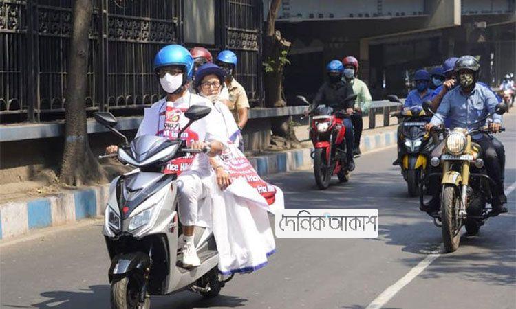 গ্যাস-তেলের দাম বাড়ায় ইলেকট্রিক বাইকে অফিস গেলেন মমতা