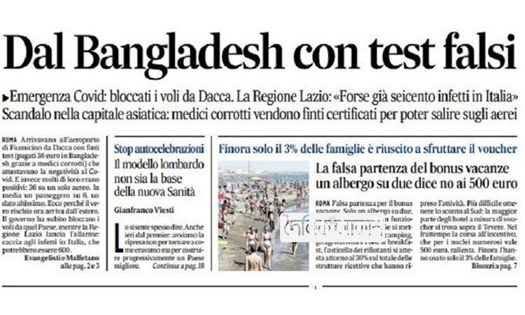 বাংলাদেশের করোনা সার্টিফিকেট নিয়ে জালিয়াতির খবর ইতালির পত্রিকায়