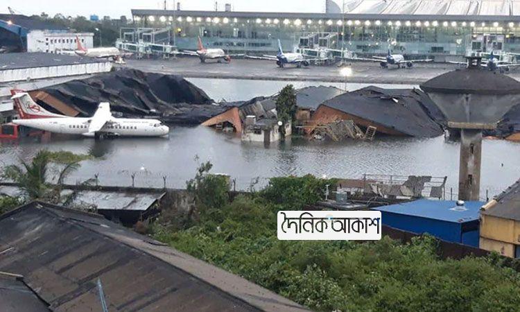 হাঁটু পানিতে তলিয়ে গেছে কলকাতা বিমানবন্দর