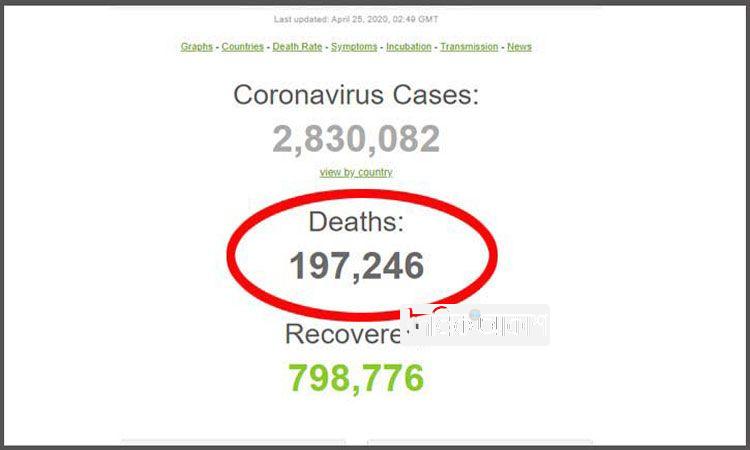 আকাশ আর্ন্তজাতিক ডেস্ক: করোনা ভাইরাসে (কোভিড-১৯) আক্রান্ত হয়ে বিশ্বজুড়ে এই পর্যন্ত এক লাখ ৯৭ হাজার দুইশ ৪৬ জন মারা গেছে।