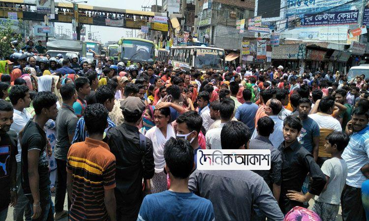 অাকাশ জাতীয় ডেস্ক: সাভারে বকেয়া বেতনের দাবিতে ঢাকা-আরিচা মহাসড়ক অবরোধ করে বিক্ষোভ করেছে একটি তৈরি পোশাক কারখানায় কর্মরত প্রায় তিন