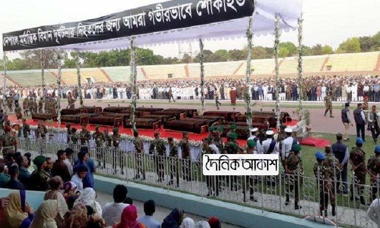 অাকাশ জাতীয় ডেস্ক: নেপালের ত্রিভুবন বিমানবন্দরে ইউএস-বাংলার বিমান দুর্ঘটনায় নিহত ২৩ বাংলাদেশির জানাজা সম্পন্ন হয়েছে বনানীর আর্মি স্টেডিয়ামে। সোমবার আসরের