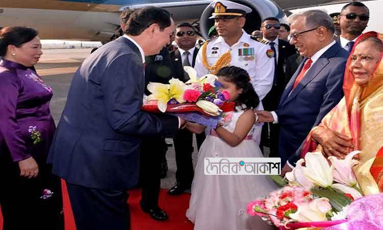 অাকাশ জাতীয় ডেস্ক: ভিয়েতনামের প্রেসিডেন্ট ত্রান দাই কুয়াং আজ তিন দিনের রাষ্ট্রীয় সফরে ঢাকায় পৌঁছলে তাকে লালগালিচা সংবর্ধনা দেয়া হয়।