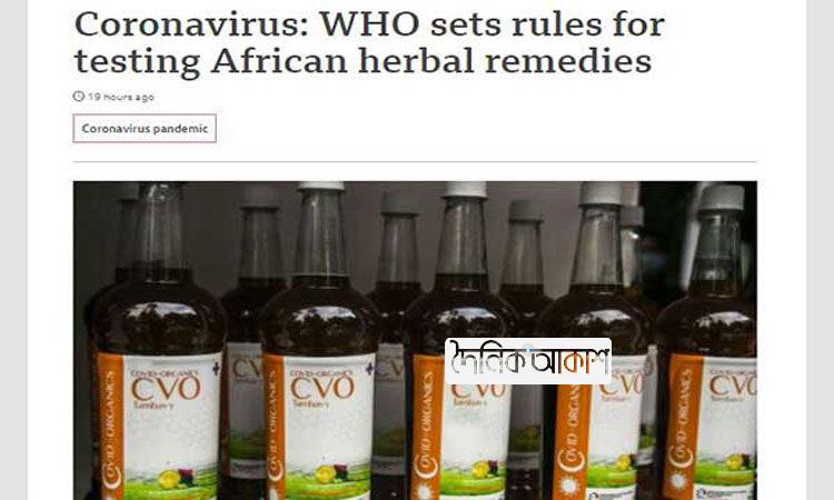 আকাশ আর্ন্তজাতিক ডেস্ক: করোনাভাইরাসের সম্ভাব্য চিকিৎসায় আফ্রিকান ভেষজ ওষুধ পরীক্ষার প্রোটোকল অনুমোদন দিয়েছে বিশ্ব স্বাস্থ্য সংস্থা (ডব্লিউএইচও)। শনিবার সংস্থাটির পক্ষ