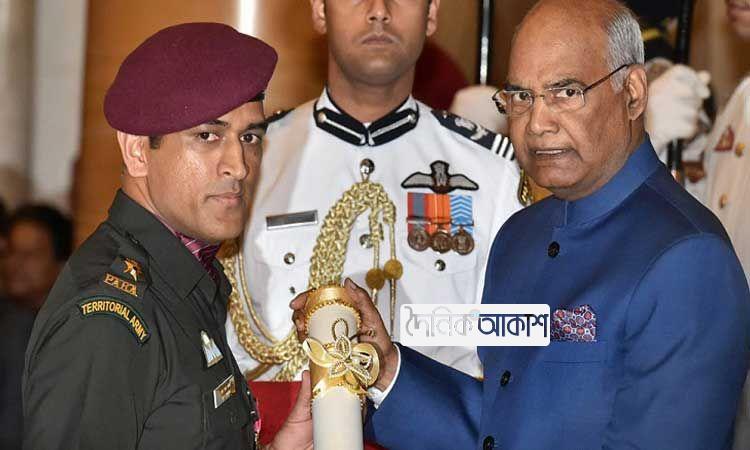 সেনার বেশে পদ্মভূষণ নিলেন ধোনি