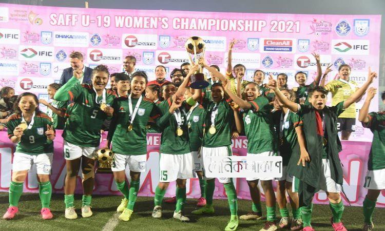 আকাশ স্পোর্টস ডেস্ক: অনূর্ধ্ব-১৯ নারী সাফ চ্যাম্পিয়নশিপ ফুটবল টুর্নামেন্টের ফাইনাল ম্যাচে ভারতকে ১-০ গোল ব্যবধানে হারাল বাংলাদেশের মেয়েরা। এ জয়ের
