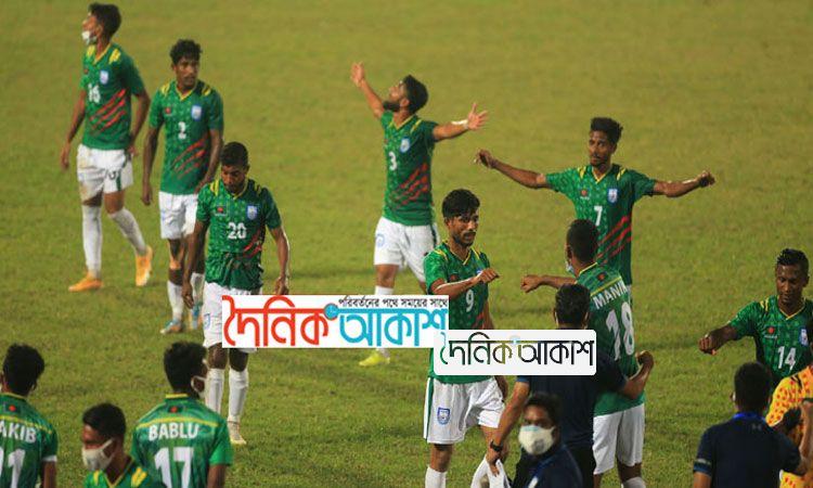 আকাশ স্পোর্টস ডেস্ক: করোনার দীর্ঘ বিরতির পর মাঠে ফিরেই জয়ের দেখা পেল বাংলাদেশ ফুটবল দল। সফরকারী নেপালকে ২-০ গোলে হারিয়ে