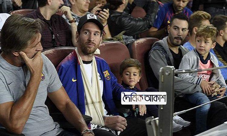 আকাশ স্পোর্টস ডেস্ক: ছেলে থিয়াগোকে নিয়ে দর্শক গ্যালারিতে লিওনেল মেসি। চোট তাকে ছিটকে দিয়েছে। তাতে আটকায়নি বার্সেলোনার জয়। বুধবার রাতে
