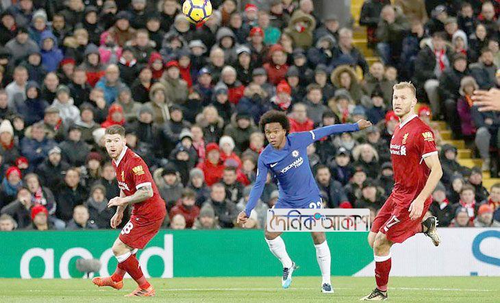 আকাশ স্পোর্টস ডেস্ক: লিভারপুলের মাঠ থেকে পয়েন্ট ভাগাভাগি করে নিয়ে এসেছে চেলসি। ম্যাচের শেষ দিকে এসে উইলিয়ানের করা গোলে অল