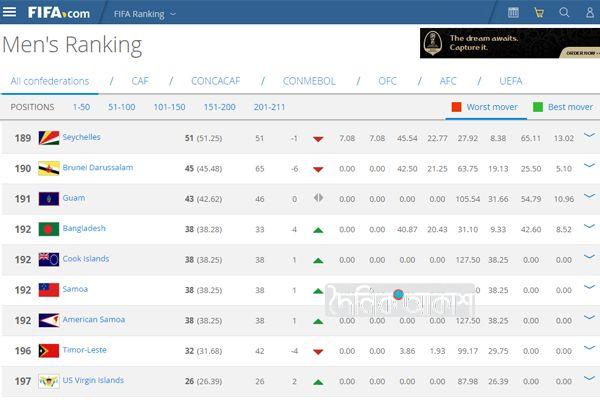 ফিফার র্যাঙ্কিংয়ে বাংলাদেশের অবস্থান ১৯২