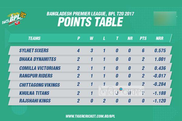 বিপিএল; পয়েন্ট টেবিলে দলগুলোর অবস্থান