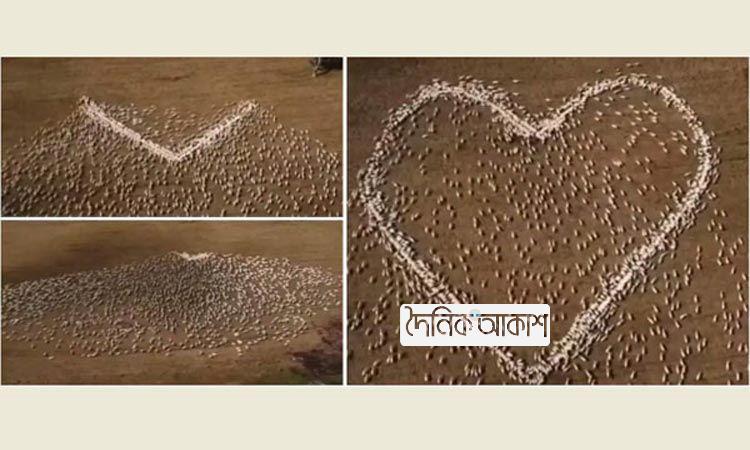 ভেড়ার পাল দিয়ে ‘হৃদয়’ বানিয়ে মৃত খালাকে শ্রদ্ধা জানালেন কৃষক