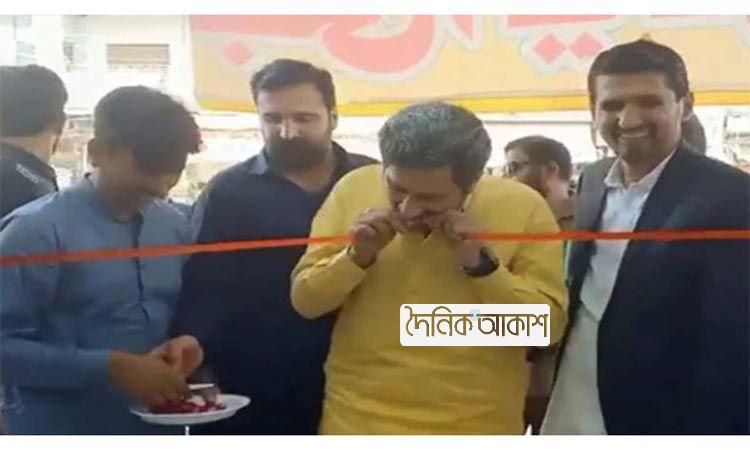 দাঁত দিয়ে ফিতা কেটে ভাইরাল পাকিস্তানের মন্ত্রী!
