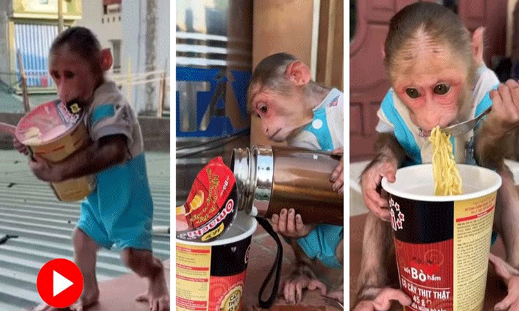 আকাশ নিউজ ডেস্ক : বানর কলা খায় এ কথা সবার জানা। কিন্তু বানর যে নুডলসও খায় এটা হয়তো অনেকে জানেন