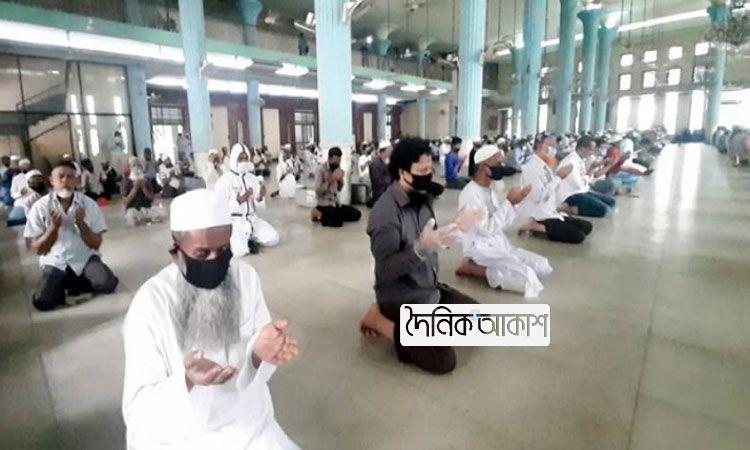 আকাশ জাতীয় ডেস্ক: প্রাণসংহারী করোনাভাইরাসের কারণে মসজিদে নামাজ পড়ার ওপর দেয়া বিধিনিষেধ তুলে নেয়ার পর প্রথম জুমায় জাতীয় মসজিদ বায়তুল
