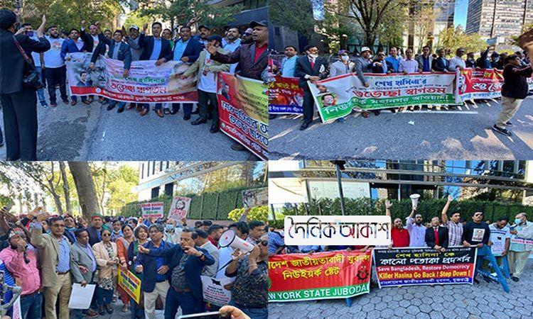আকাশ আর্ন্তজাতিক ডেস্ক: প্রধানমন্ত্রী শেখ হাসিনা জাতিসংঘের সাধারণ পরিষদের ৭৬তম অধিবেশনের ভাষণ দেওয়ার সময় জাতিসংঘ সদর দপ্তরের সামনে বিক্ষোভ সমাবেশ
