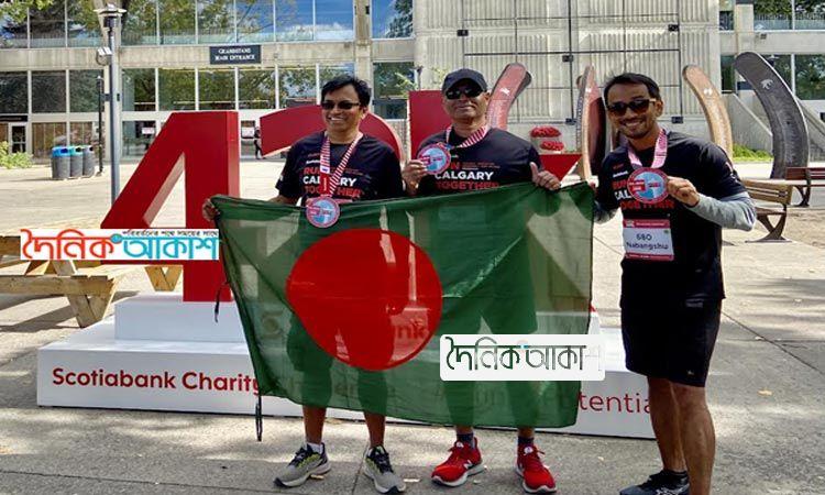 কানাডায় জাতীয় পতাকা উড়িয়ে তিন বাংলাদেশির ম্যারাথন দৌড়
