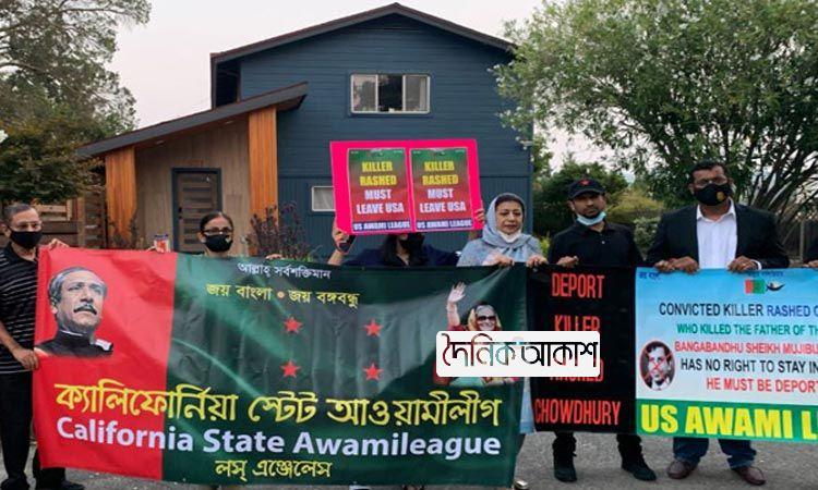বঙ্গবন্ধুর খুনি রাশেদ চৌধুরীর যুক্তরাষ্ট্রের বাড়ির সামনে বিক্ষোভ