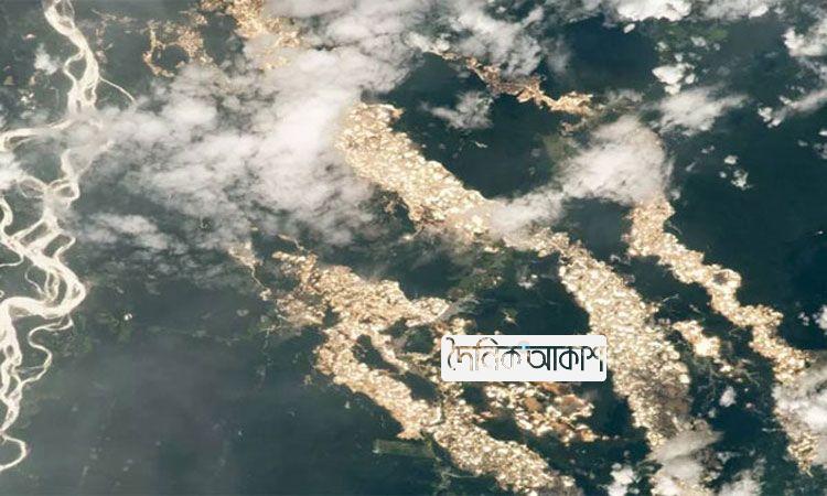 আকাশ নিউজ ডেস্ক: দক্ষিণ আমেরিকার পেরুতে আমাজনের গভীর বনাঞ্চলের একটি অংশ থেকে বের হচ্ছে সোনার আলোর উজ্জ্বলতা। নদীগুলিতে বয়ে যাচ্ছে