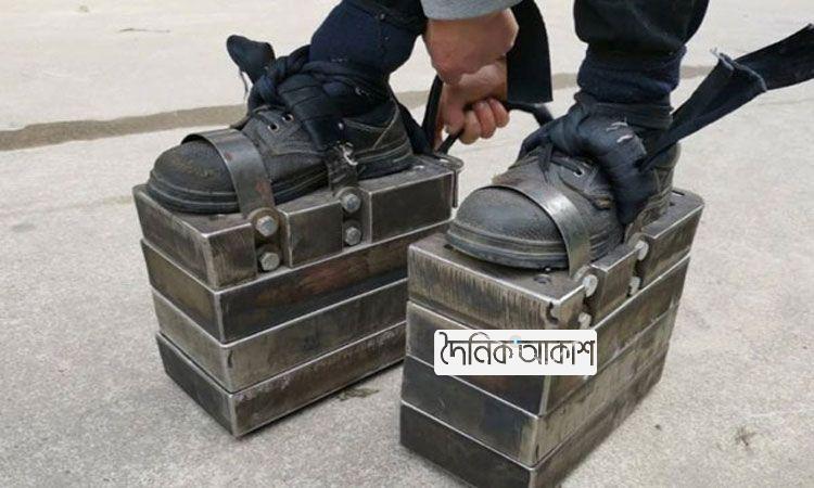 আকাশ নিউজ ডেস্ক: জুতার ওজন আবারও ১৫০ কেজিও হয়? জুতার সঙ্গে ১৫০ কেজি ওজনের স্টিলের প্লেট জুড়ে দিয়ে এক ব্যক্তি