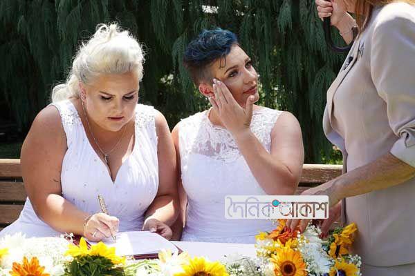 আকাশ নিউজ ডেস্ক: অস্ট্রেলিয়াতে কিছুদিন আগে রাষ্ট্রীয়ভাবে সমকামী বিয়েকে স্বীকৃতি দেওয়া হয়েছে। এরপরই প্রথম বিয়েতে আবদ্ধ হয়েছেন দুই নারী। তাদের