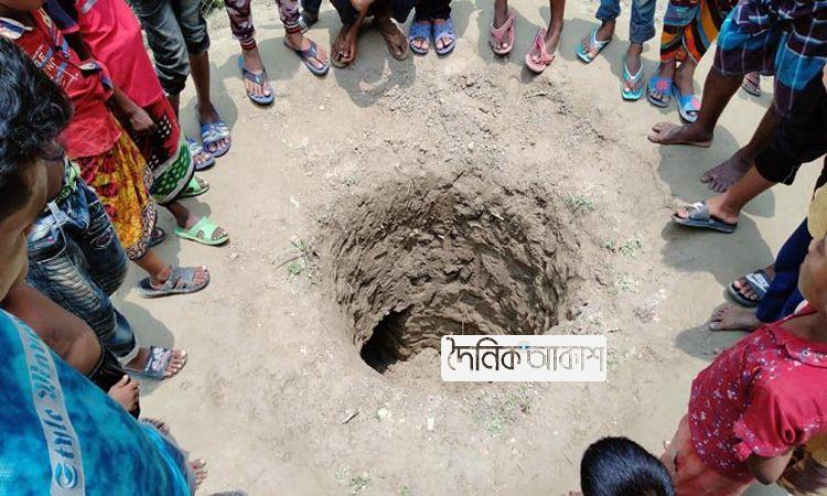 হঠাৎ জমিতে ৬ ফুটের গর্ত, এলাকায় তোলপাড়