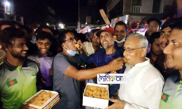সাকিবের নিষেধাজ্ঞা শেষ হওয়ায় মাগুরায় মিষ্টি বিতরণ