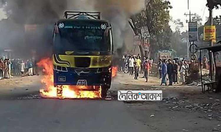 কুমিল্লায় গ্যাস সিলেন্ডার বিস্ফোরণে বাসে আগুন