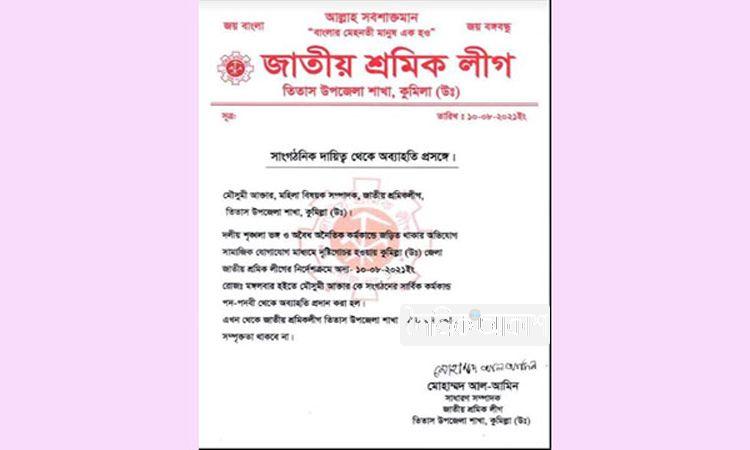 ছিনতাইয়ের ঘটনায় শ্রমিক লীগ নেত্রীকে দল থেকে অব্যাহতি