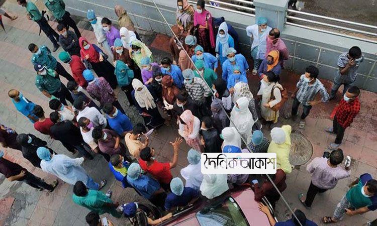 বেতন-বোনাসের দাবিতে ম্যাক্সে স্বাস্থ্যকর্মীদের বিক্ষোভ